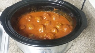 Once you’ve scooped all the meat onto the baking sheets, put them in the oven to broil for 8 minutes, turning them over half way though. Preheat the slow cooker with a can of marinara sauce before hand. after the meatballs are done in the oven, place them in the slow cooker and cover them with the second can of sauce. That’s pretty much it. Oh stir occasionally. I like to leave them in the slow cooker for 5 hours. Easy right?