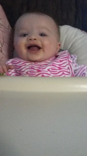 - She now eats solid baby food (She loves green beans)