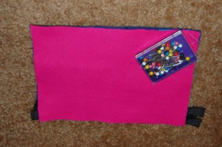-Pin the 2  fabrics and zipper together along the the top of the zipper
