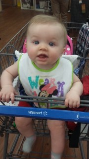 I FINALLY got her on a schedule that she has stuck with for about 2 months. Bath at 8:30 and bottle at 9 and she falls asleep right after her bottle and stays asleep ALL NIGHT and wakes up around 8:30 or 9. Sometimes she’ll do her mama a favor and sleep till 10 so I can sleep. But that doesn’t happen very often. She is always extremely happy when I get her out of her crib in the morning though!
