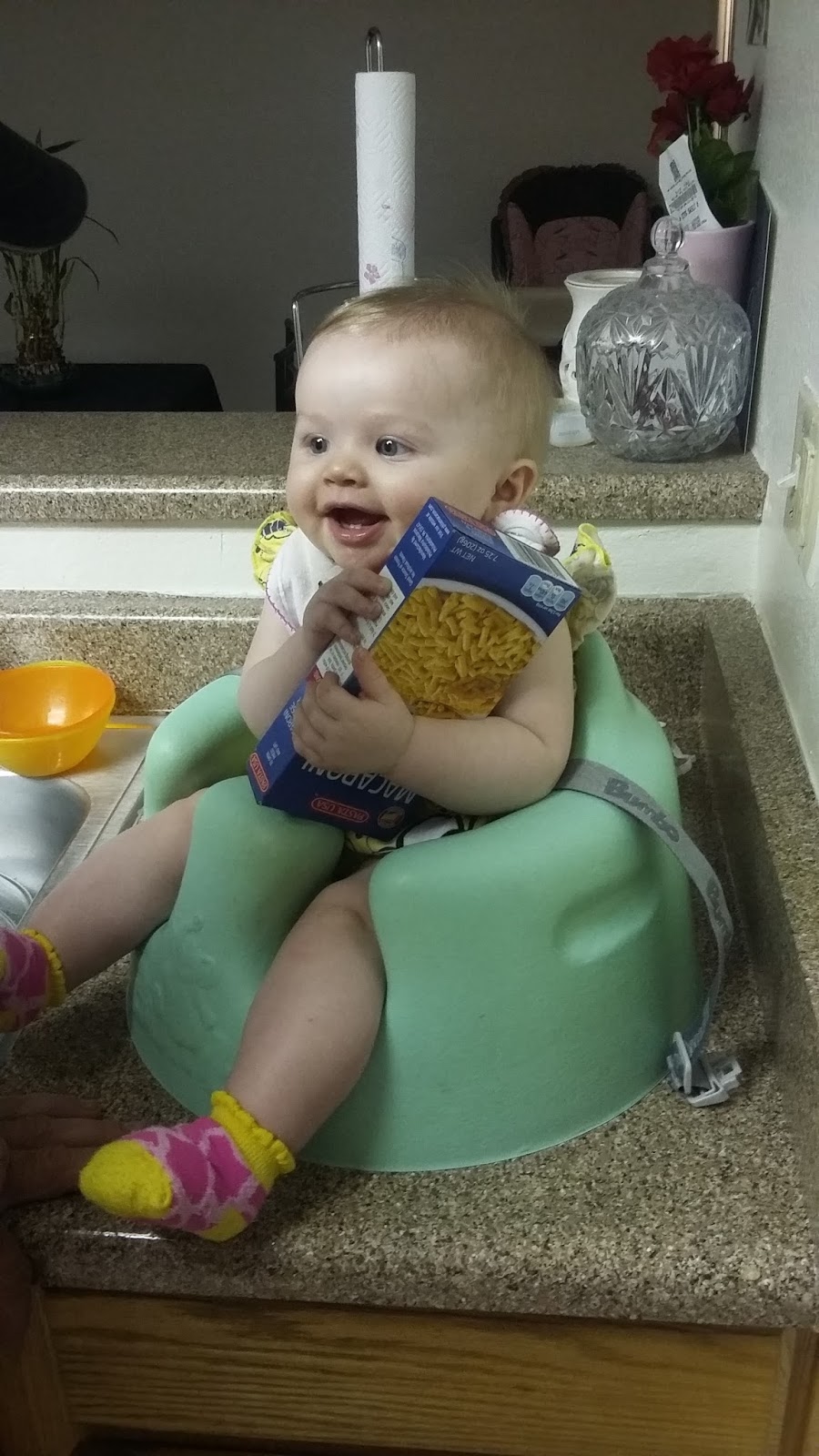 I have a feeling she is going to skip crawling all together. She will not crawl forward and would rather scoot across the floor. The other day she scooted to the couch and was trying to pull herself up using the couch. I think standing is in the near future!