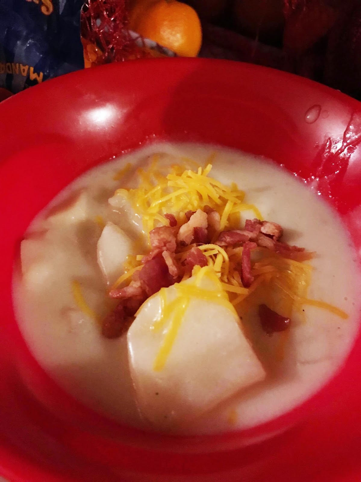 - Bacon, cooked and crumbled (Or you can be lazy and just buy bacon bits like I did.)