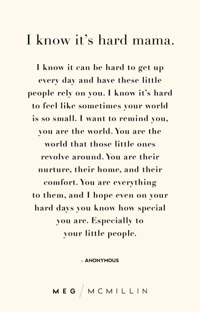 If you are have a rough day or even a rough week because mom lives are unpredictable, messy, crazy and exhausting, remember that you mean the world to your babies and they need you. That’s all that matters.