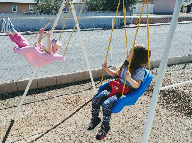She straight slaps Lanaia in the face now. Just a few weeks ago, my sweet 2 year old took her shoe off, walked over to her sister who was just laying there, and smacks her upside the head with her shoe! We had to separate them at the table because Averie doesn’t like the way that her older sister chews…? So she smacks her.