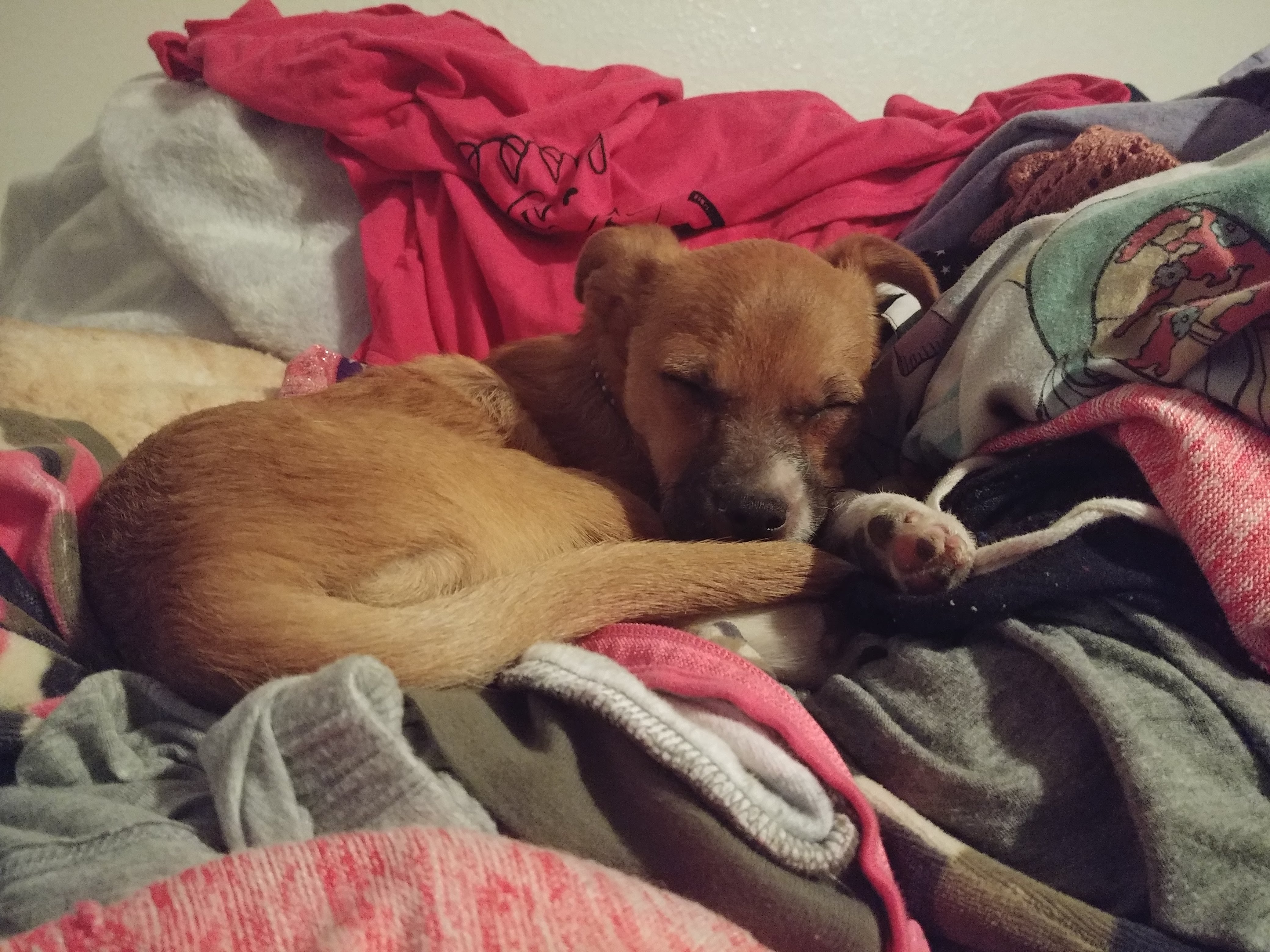 Peanut is the best little puppy and so behaved for being a puppy. She’s not too fond of me folding laundry though, she’d much rather lay in it.
